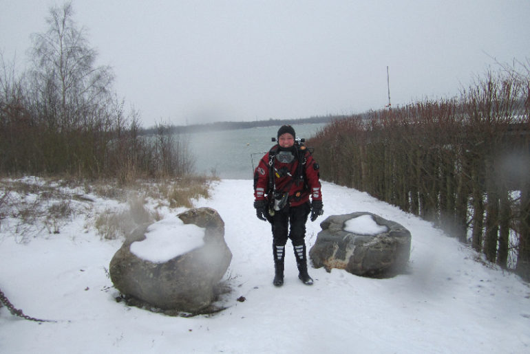Bei Eis und Schnee musste unbedingt am Blausteinsee in Eschweiler mein neuer Tauchkrams getestet werden. Ich bin halt kribbelig, wenn es was Neues gegeben hat. So machten Peter und ich uns auf zum See. Stefan war auch neugierig und kam direkt dazu. Zunächst stellten wir die neue Ausrüstung vernünftig ein und anschließend ging es dann für eine Stunde ins Wasser. Es war am Anfang noch etwas unelegant und die Sicht war schon vorher hinüber, aber der Spaß kam trotzdem nicht zu kurz…