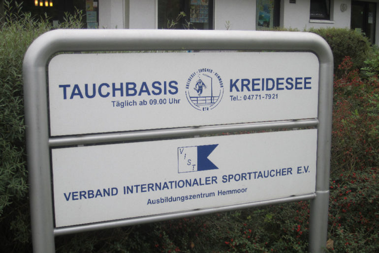 Wie immer tauchten wir unseren ersten Tauchgang in Hemmoor zunächst die Straße von E1 zum Rüttler hinunter, überzeugten uns, ob er noch steht und dann wieder zurück. Dieses Mal sind wir direkt an der Meisterbude nach inks abgebogen, um zu gucken, wo die Treppen ungefähr liegen. Leider war die Sicht aber schon recht schlecht an dem Tag, so dass diese aus 33 m noch nicht einmal mehr schemenhaft zu erkennen waren.