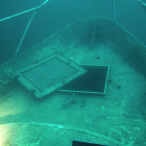 Und siehe da, wir fanden die Segelyacht noch. Die Luken sind mittlerweile, anders als bei unserem letzten Besuch, geöffnet worden, so dass ins Wrack hineingeschaut werden kann. Im Wrack selbst war ganz hervorragende Sicht, so dass die Fotos darin, mit Blitz fotografiert, richtig prima geworden sind.