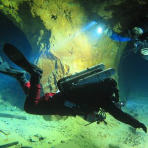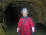 Irgendwann im Laufe des Vormittages war dann unser Geraffel im Berg und wir konnten uns zum Tauchen umziehen. Endlich ging es los. Endlich tauchen! Am Anfang mussten wir eine ganze Strecke durch flaches Wasser waten, aber dann wurden die Stages angeklippt und jeder hat mit seinem Buddy noch einmal einen Check gemacht. Das, was dann folgte, war einfach nur noch atemberaubend: Die beiden Tauchgänge in dem kalten, leicht sauren Wasser waren geprägt von beeindruckenden Farbenspielen, geräumigen Gängen und viel Abwechslung. Einige Relikte aus der Abbauzeit ließen erahnen, wie hier gearbeitet wurde. Unsere Mühen wurden mehr als belohnt. Nach zwei genialen Tauchgängen war leider schon alles wieder vorbei. Zum Glück mussten wir unsere Ausrüstung nicht noch am gleichen Tag herausholen, sondern konnten dies einen Tag später erledigen, denn an diesem reiste auch schon die nächste Gruppe – einen Taucher kannten wir schon von einer Begegnung ein Jahr zuvor am Walchensee – zum Entdecken der Opal Mine an. Das klingt jetzt nach Massenabfertigung, aber das ist es überhaupt nicht. Es dürfen pro Jahr nur 40 Taucher in die Mine hinein. Warum das so ist, habe ich leider nicht richtig verstanden.