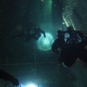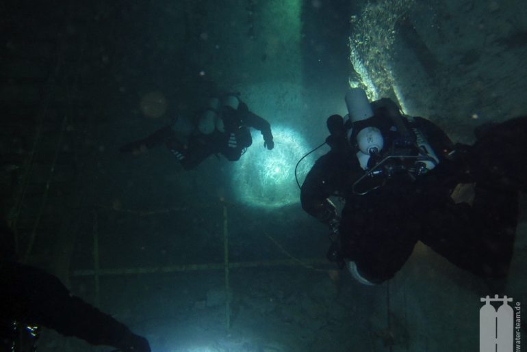 Wasser: 13°C, max. Tiefe: 36 m, Sicht: soweit die Lampe reicht, max. Tauchzeit: 45 Min.