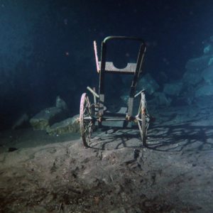 Wir sprachen uns kurz zu den vier geplanten Tauchgängen ab. Der erste sollte ein Tauchgang werden mit einer Maximaltiefe von 36 m (der tiefste von den Vieren) und dem Durchtauchen eines runden Schachts, der 6 m weiter unten auf eben der Tiefe in einem Raum endet. Ein Stückchen weiter geht es in der Halle wieder nach oben, so dass wir wieder auf der Ebene herausgekommen sind, wo wir in den Schacht eingestiegen sind. Überall fanden wir an den Wänden noch Dinge aus der Abbauzeit: Lampen, Steuerungen…