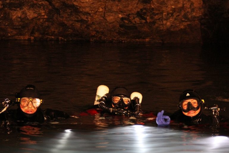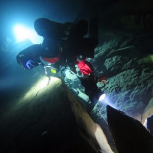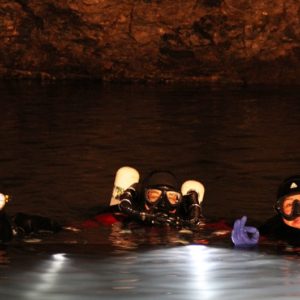 … aber dieses Mal haben wir Mike Lux mitgebracht, der dort zwei Cave-Schnuppertauchgänge absolvieren durfte.