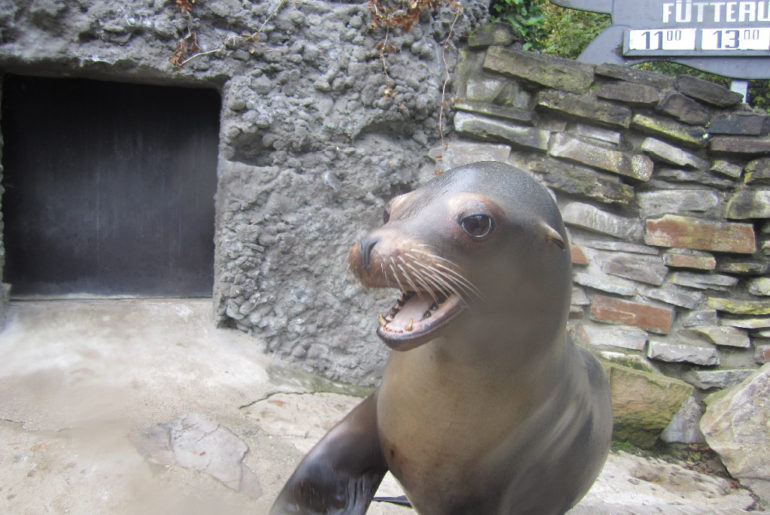 Besonders hat uns am Ende die Fütterung, bei der wir als Gruppe ebenfalls helfen durften, gefallen. Hier haben die Tiere bewiesen, dass sie nicht nur unter Wasser Bewegungsgeschick vorweisen können, sondern auch an Land. Achso, es gab natürlich Fisch – was denn auch sonst.